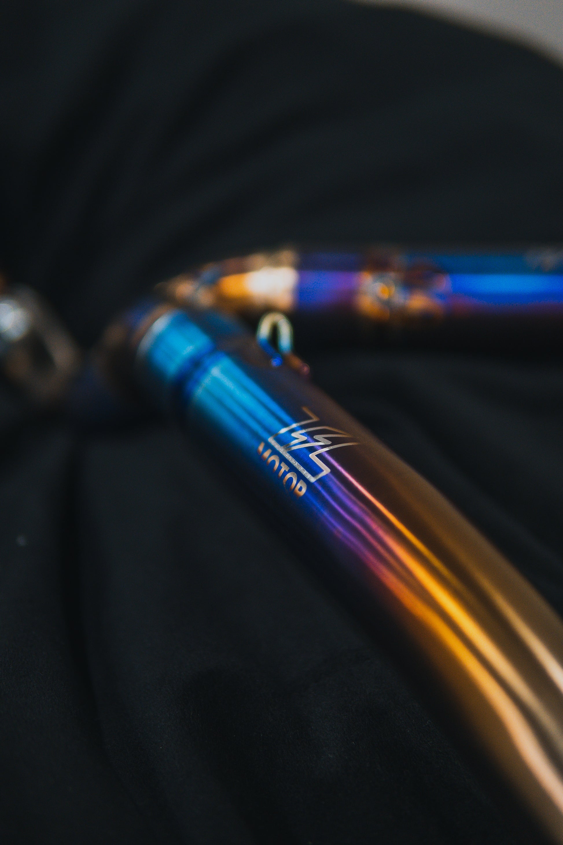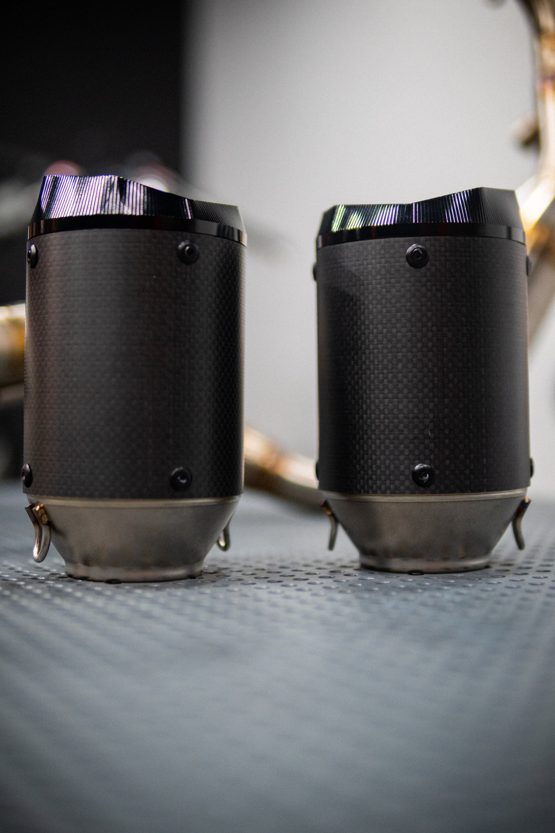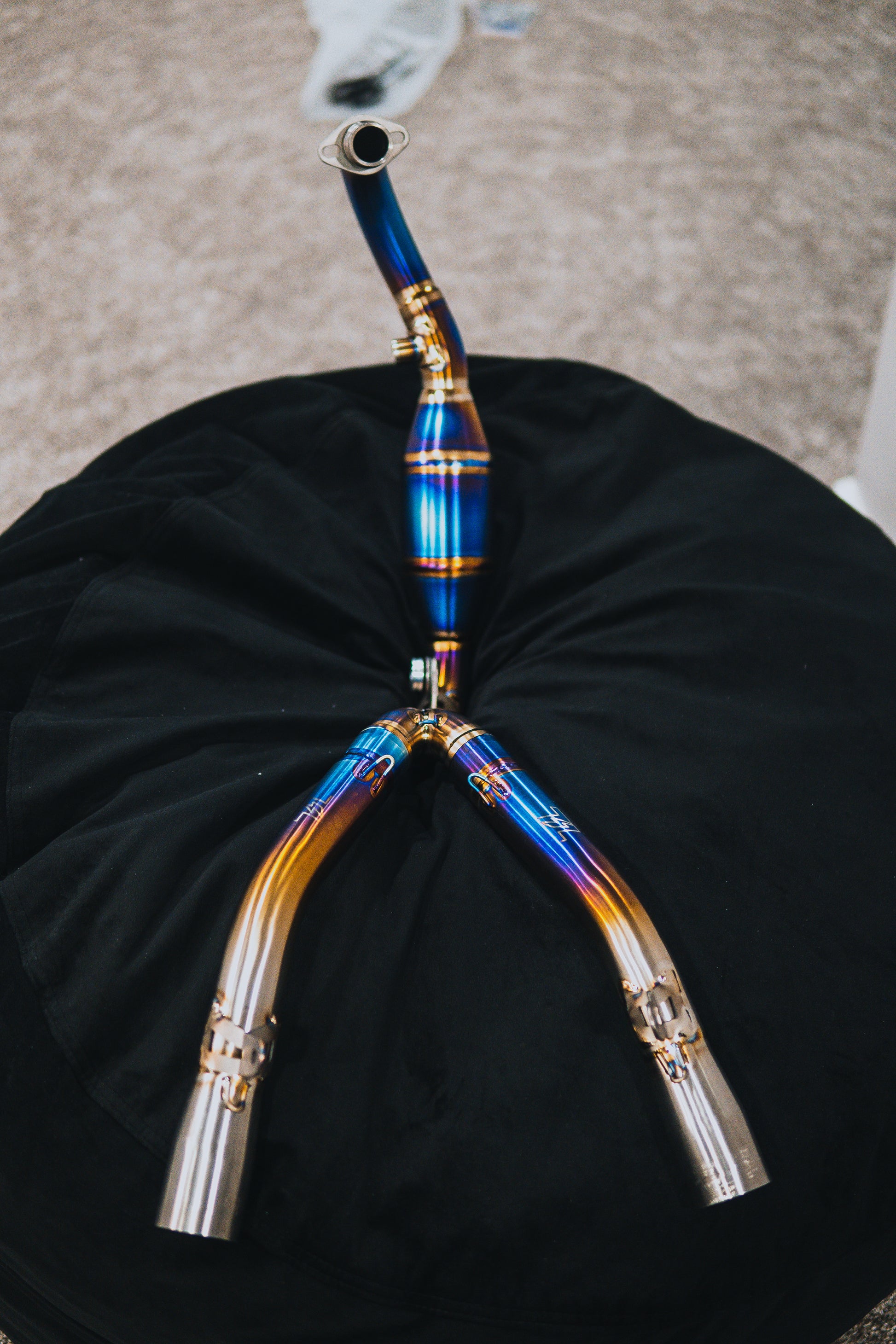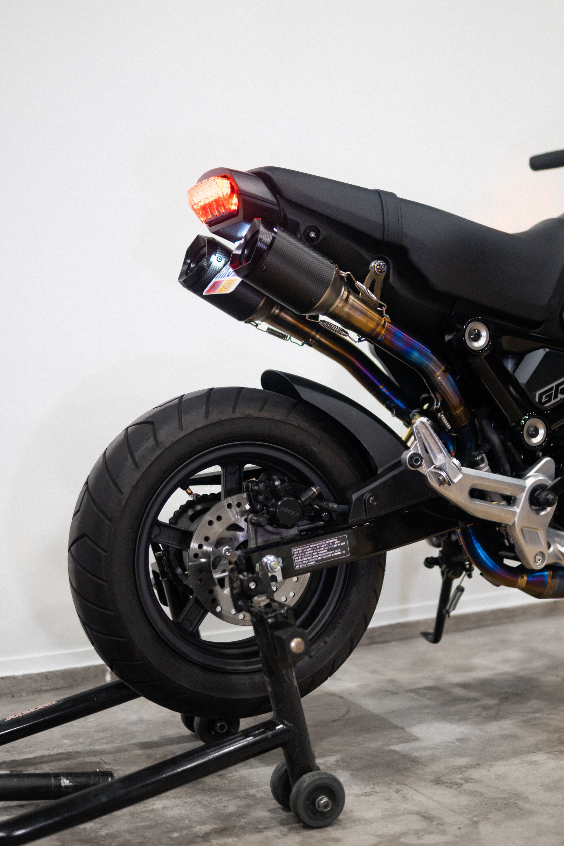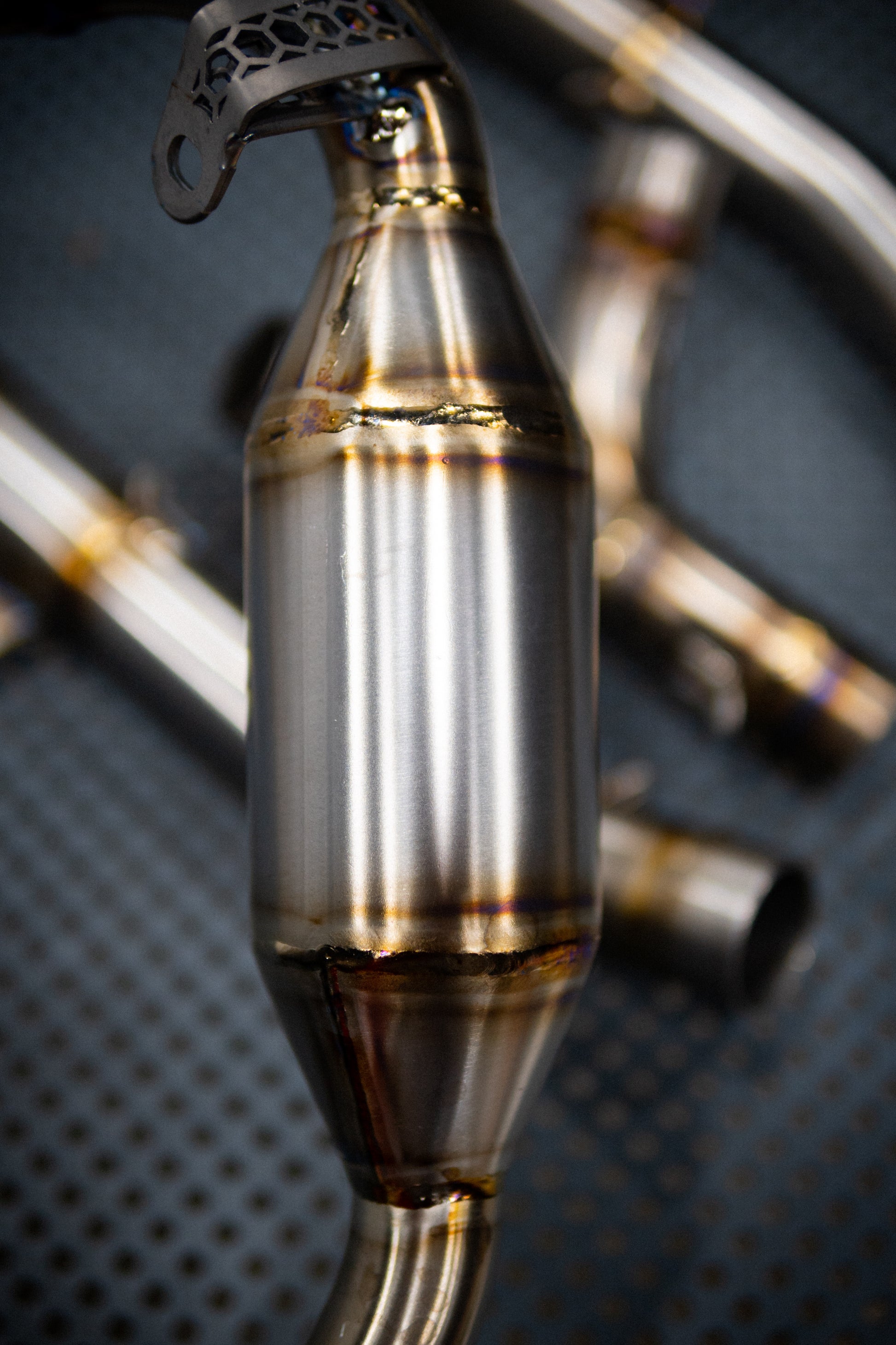 Crafted in-house from premium-grade titanium and featuring beautiful hand-welds, our beautiful system is designed to seamlessly follow the lines of your bike—looking as if it came straight from the factory. This system features dual 50mm aftermarket exhaust silencers optimizing airflow for increased power compared to OEM exhaust. Despite the larger outlet diameter, we've incorporated a compact resonator filled with high-quality woven fiberglass to simulate back pressure, ensuring you don't lose any torque.