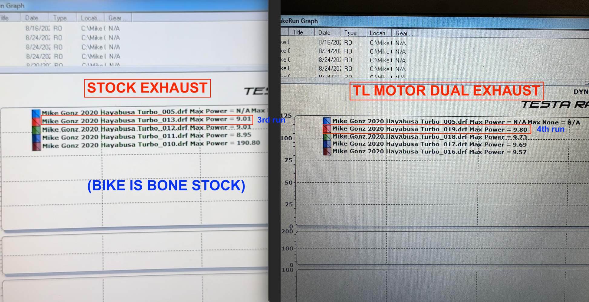 We've put our exhaust to the test on the dyno, comparing it to the OEM exhaust on a stock bike setup, and our Dual Exhaust System showed a gain of approximately 0.79 HP. This data is from a true back-to-back test (dyno results attached below).