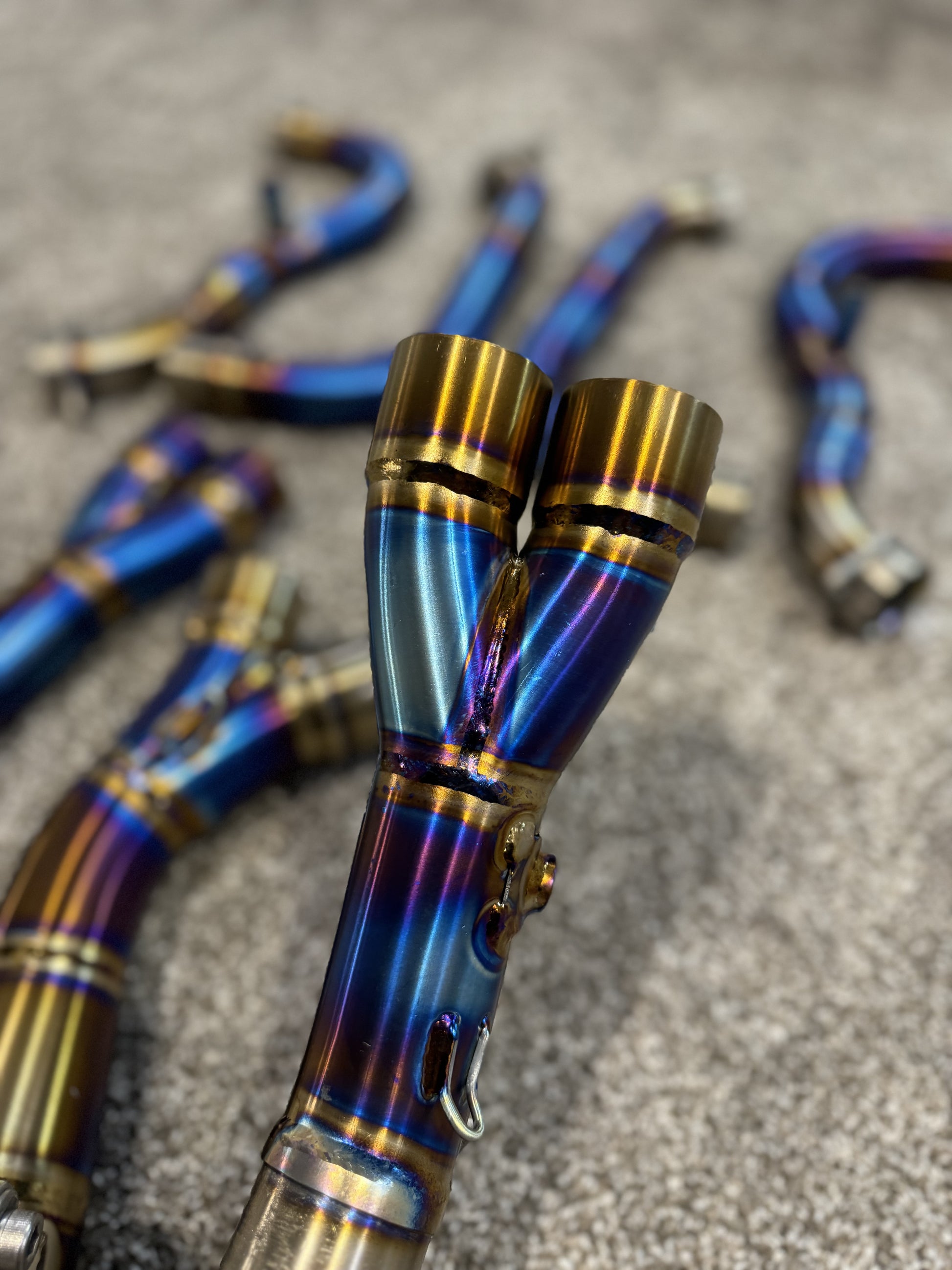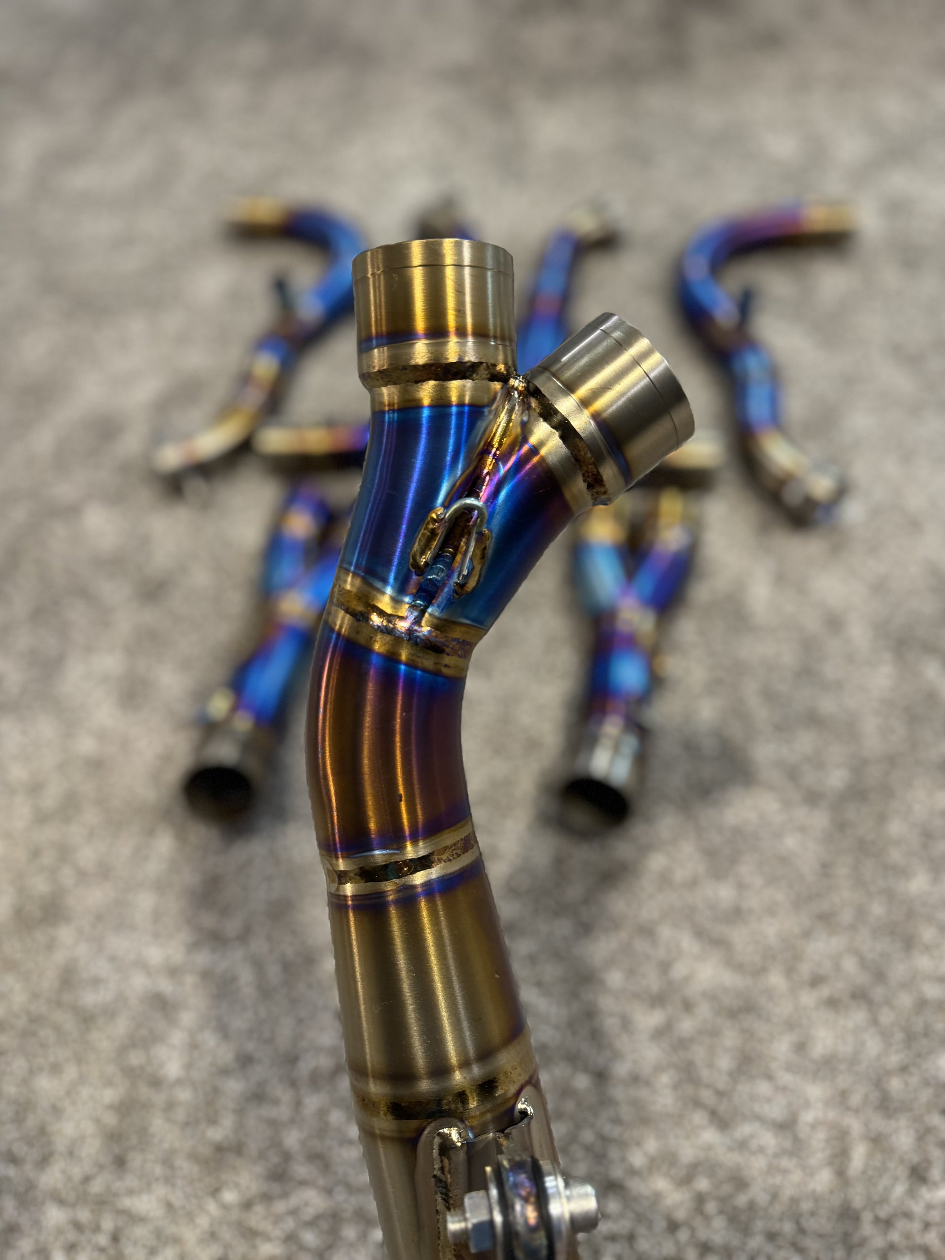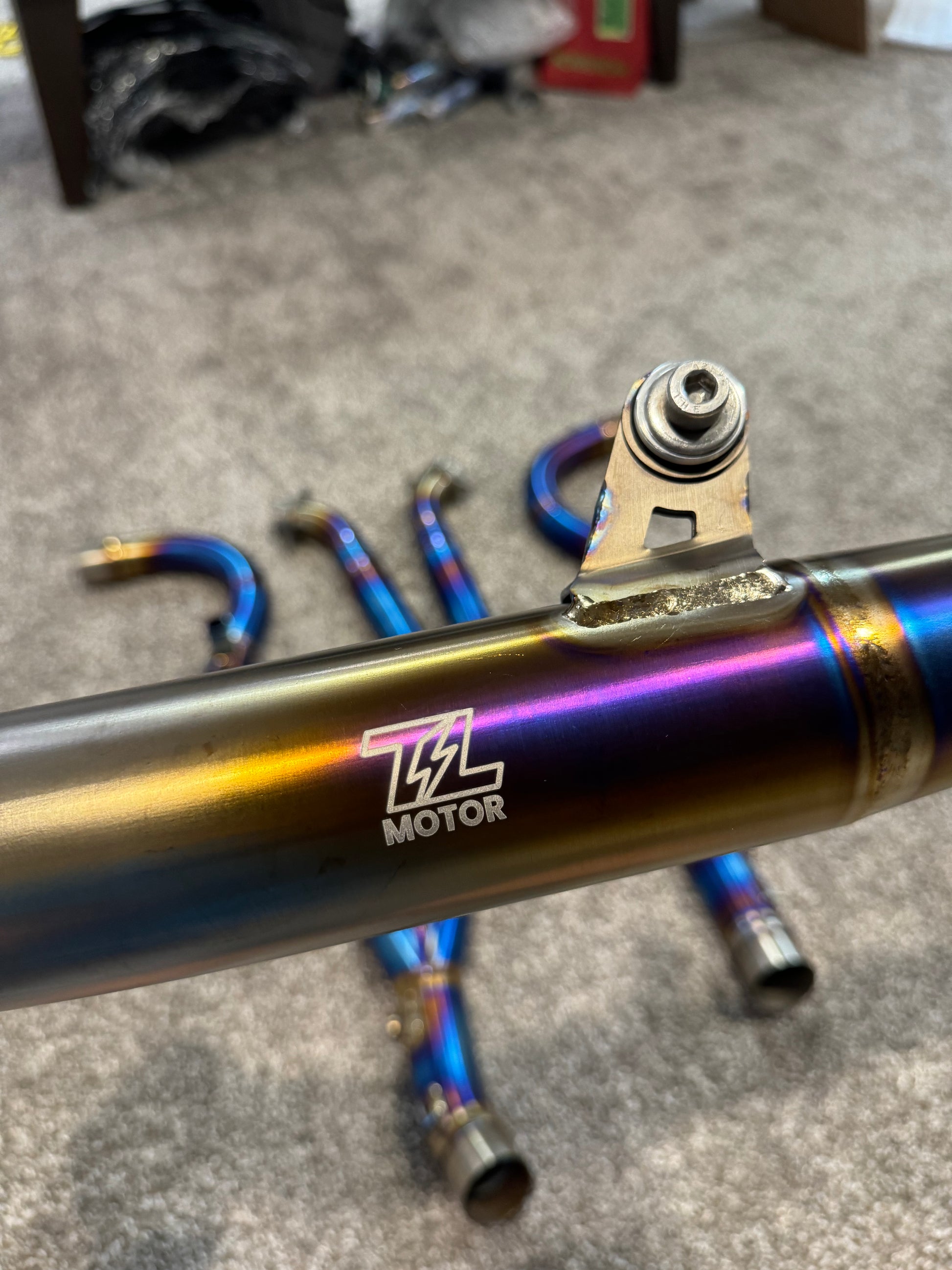 Introducing our TL Motor Titanium Headers, meticulously crafted in-house from premium titanium and featuring exquisite hand-welds. These headers are designed with a slightly larger diameter on the mid-pipe, optimizing airflow for increased power compared to standard aftermarket options.