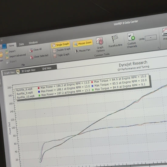 Dyno graphs and test footage are included for reference.
